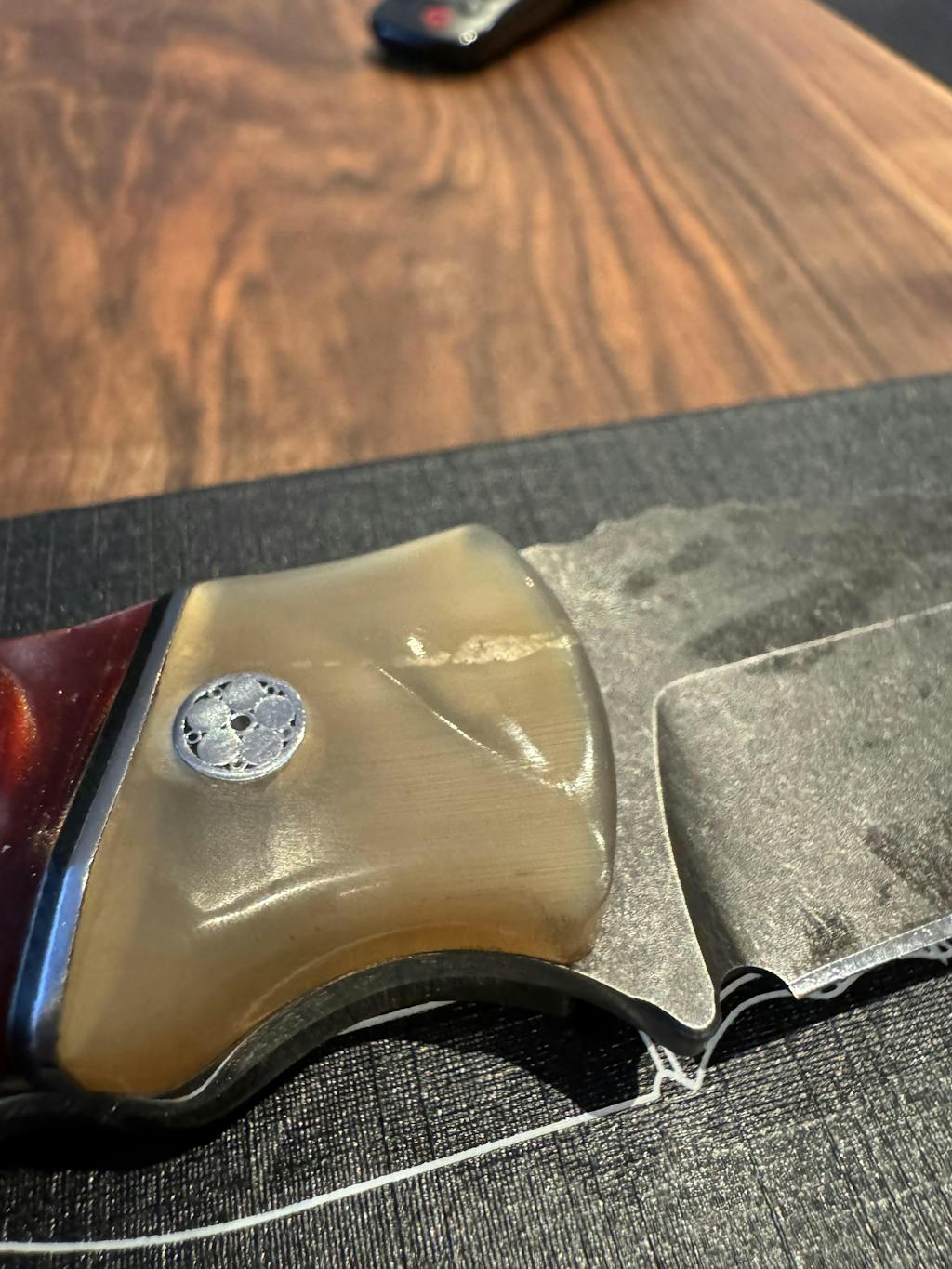 • Material mâner: lemn de nuc, rășină rubin, corn de taur