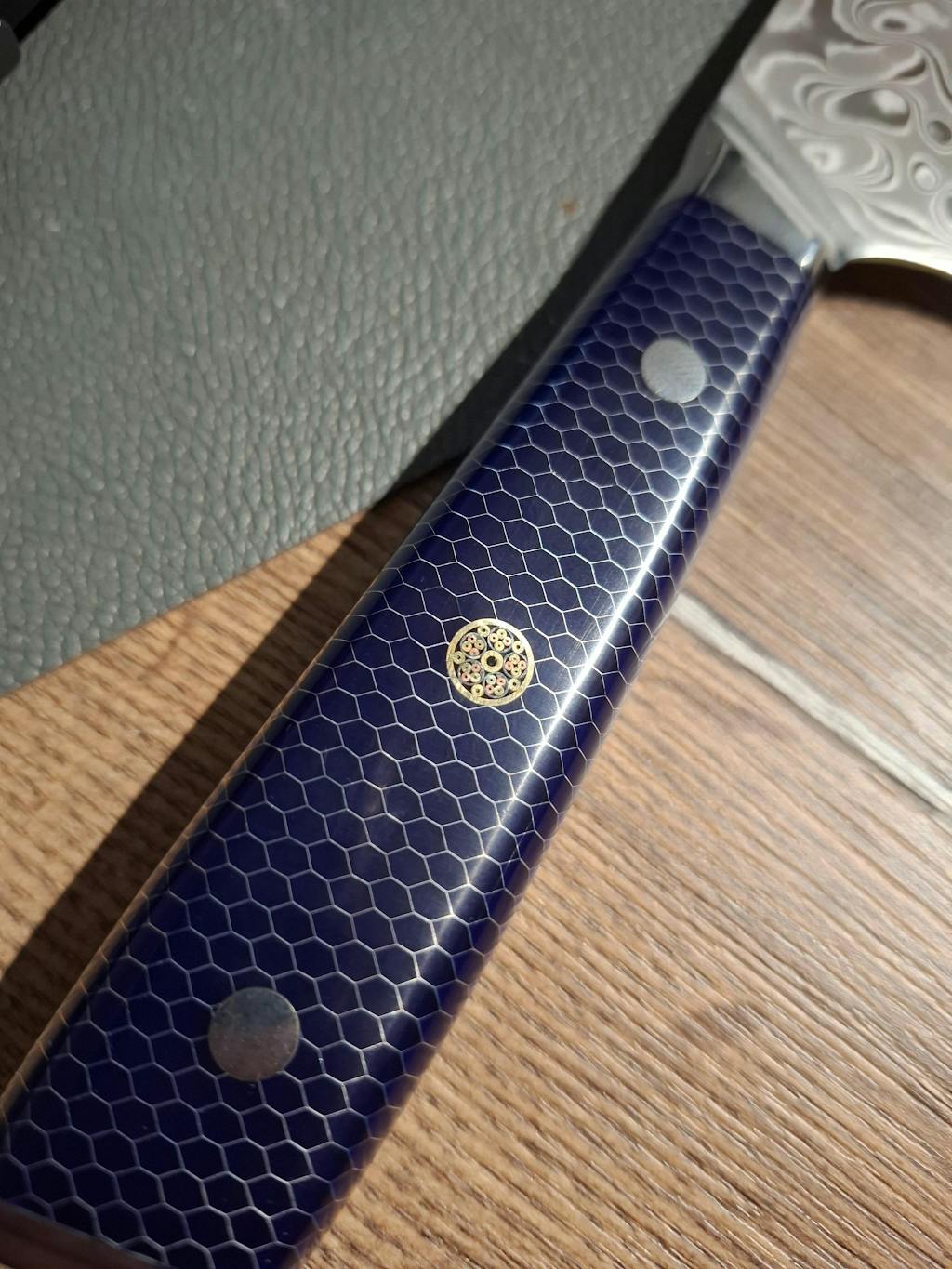 Cuțitul bucătarului, cuțitul pentru profesioniști, oțel damasc, mâner rășină model fagure, 20 cm (C15) - DACOBI.ro