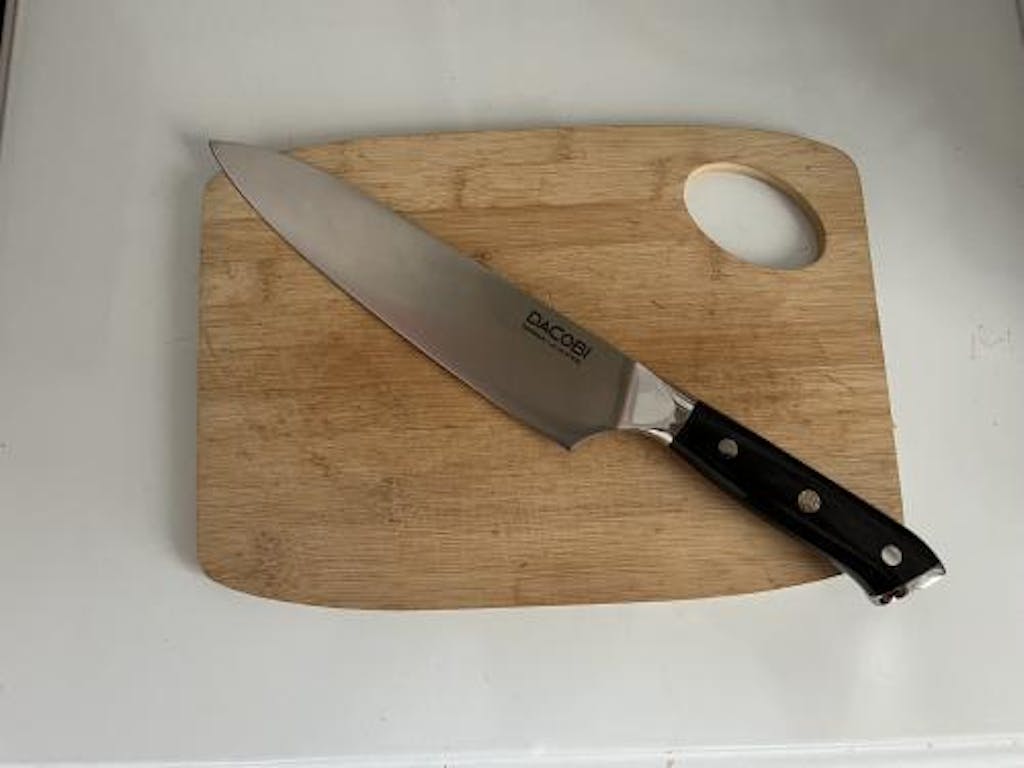 Vă prezentăm alegerea clasică de cuțit al bucătarului, multifuncțional și adus la un nivel superior de rezistență prin materialul lamei. Oțelul din lame poate fi inoxidabil, tratat (în componența sa nu intră carbonul) și forjat după metoda Damasc. Această opțiune Dacobi (C6) de 20.5 cm combină calitatea oțelului german 1.4116, renumit pentru durabilitate și rezistență și superior oțelului inoxidabil, cu manevrabilitatea asigurată de mânerul de lemn laminat. Ocazia ideală pentru a începe colecția din bucătărie.