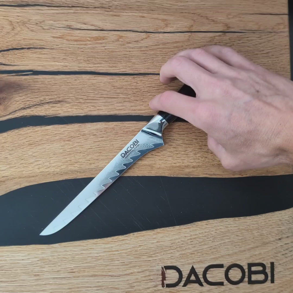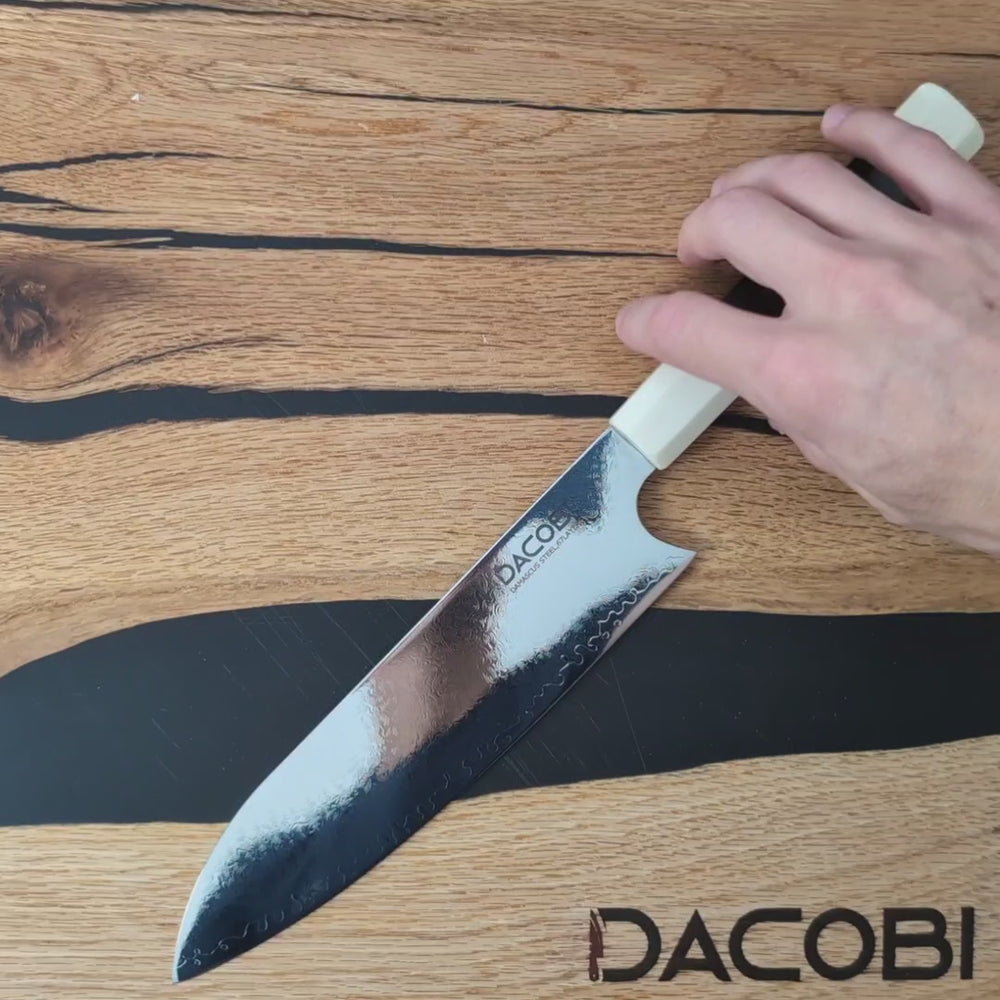 Intradevar este un cutit universal. L-am incercat, folosit, imediat si am constatat ca sta foarte bine in mana, este foarte echilibrat, si poate fi folosit usor in diferite " operatii" in bucatarie. Este foarte versatil si, deocamdata, ascutirea pare sa fie foarte buna si sa reziste in timp.