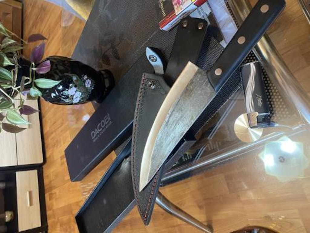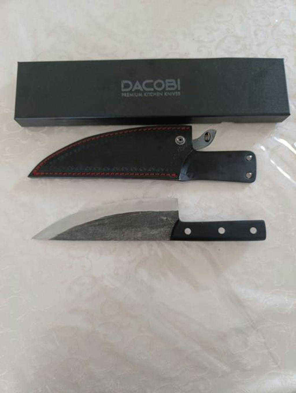 Odličan nož. Vrlo oštar. Došao je lijepo zapakiran u svojoj kutiji i u kožnoj futroli.