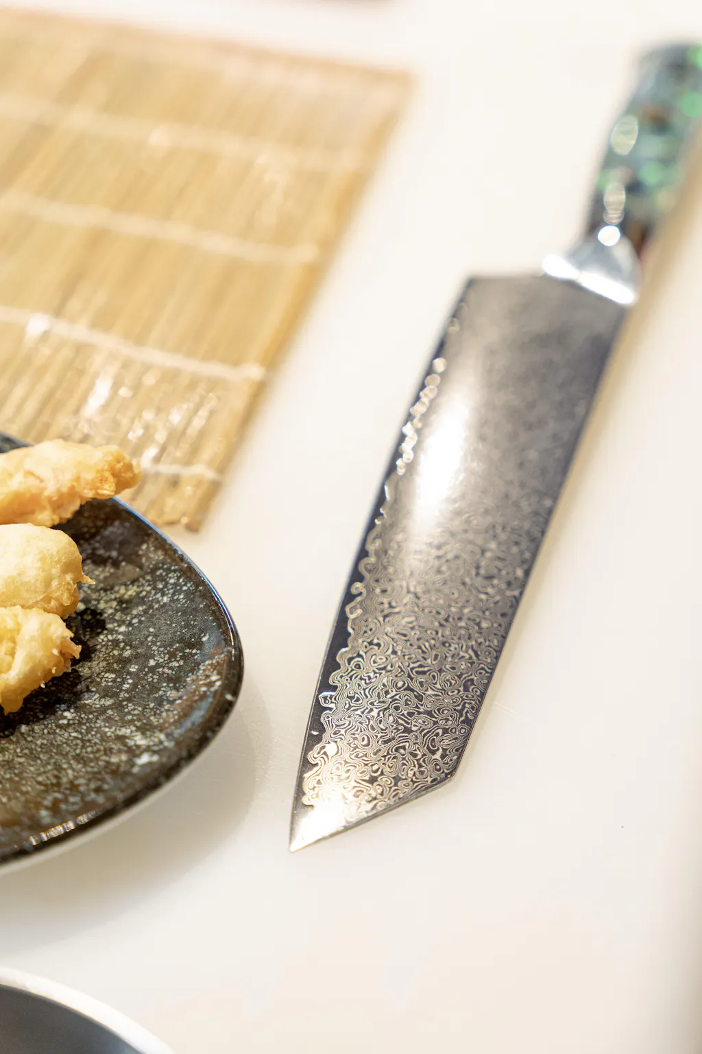 Cuțit Kiritsuke pentru pește, oțel damasc, mâner rășină, 21 cm (C24)