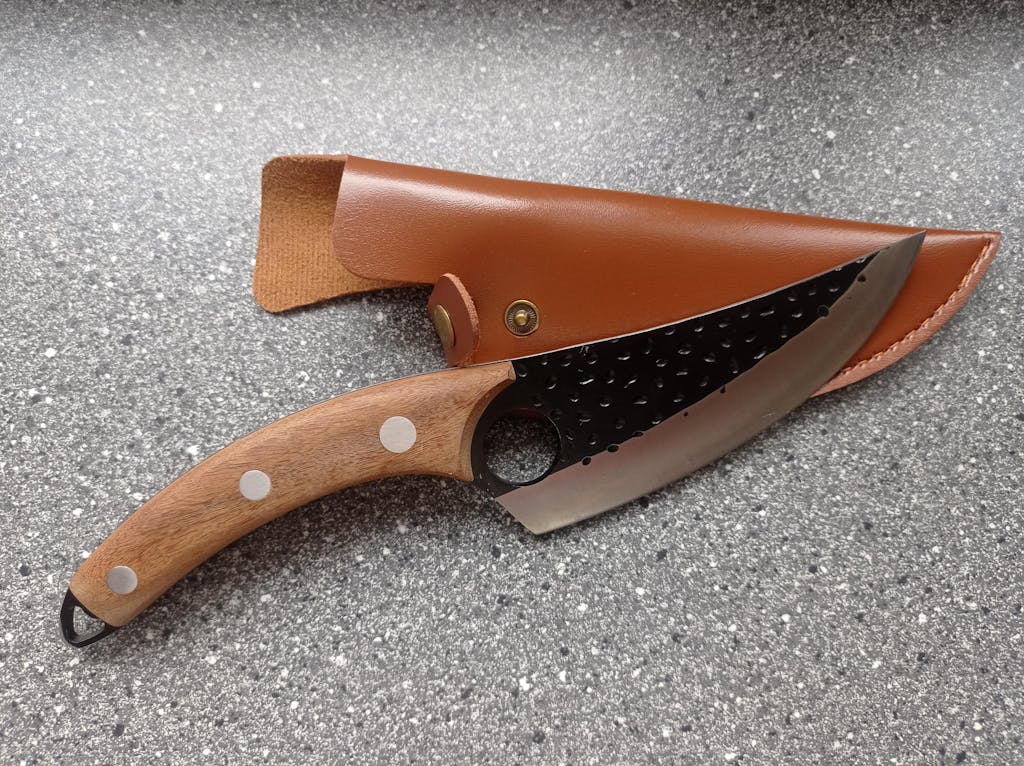 Pachetul conține: 1 x Cuțit Caraiman pentru tranșat, 1 x teacă din piele ecologică